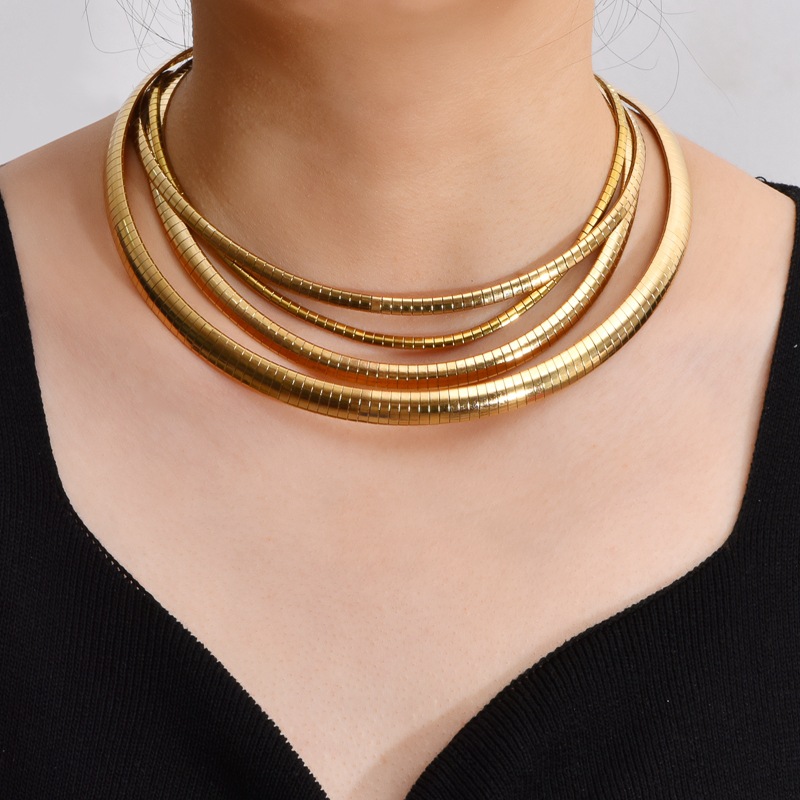 Cross-Border European and American Chain Necklace Stainless Steel Flat Snake Bone Chain Necklace European and American Necklace Hip-Hop Fashion Men's and Women's Clavicle Chain
