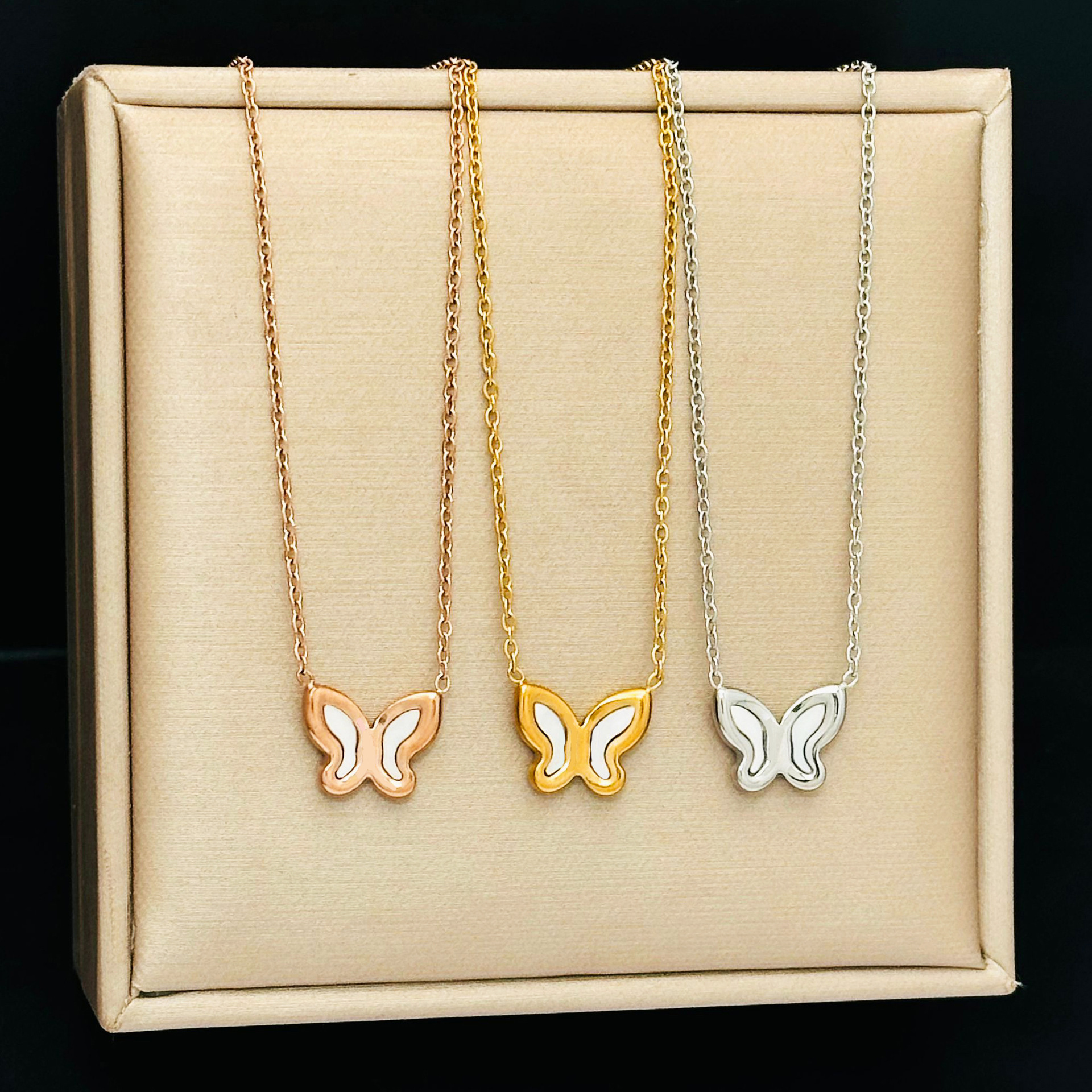 Titanium Steel Trendy French-Style Light Luxury Mother-Of-Pearl Butterfly Clavicle Necklace New on Instagram 2022