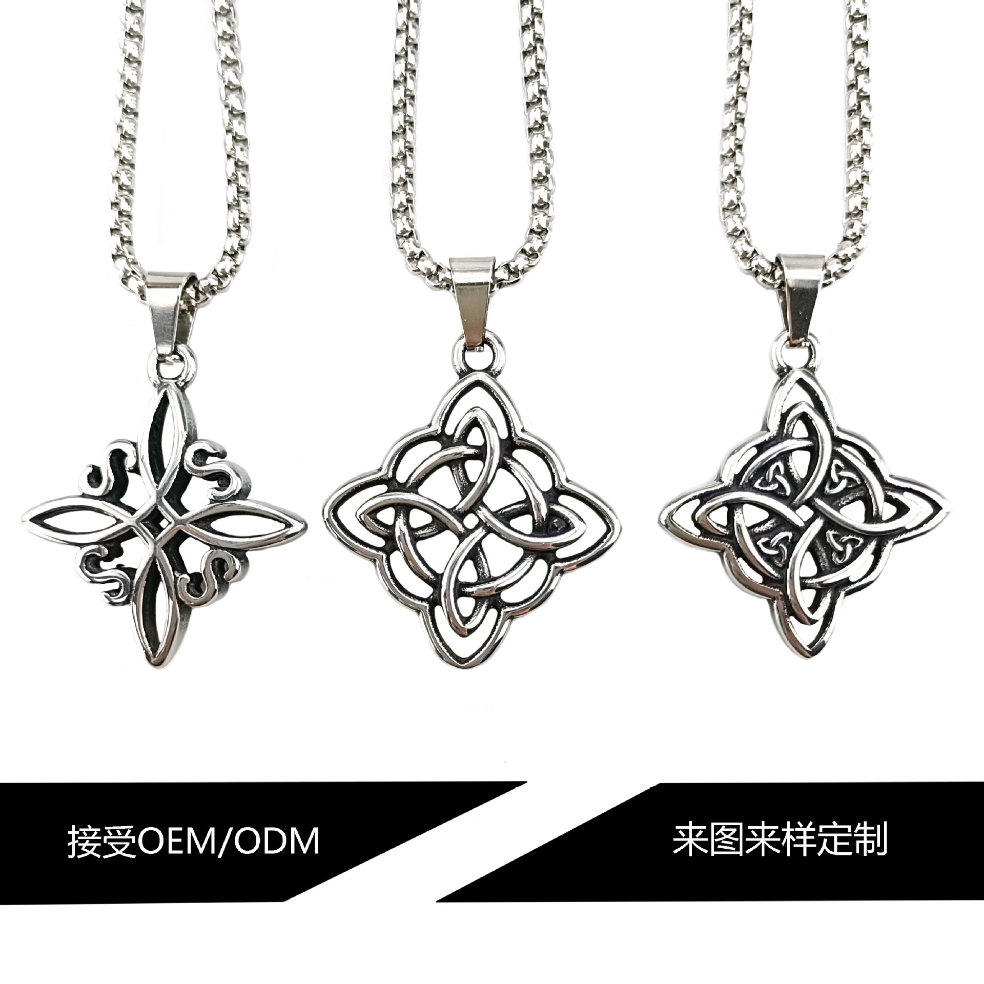 2023 Cross Stainless Steel Retro Celtic Knot Necklace Endless Love Shape Pendant Popular Three-Dimensional Style