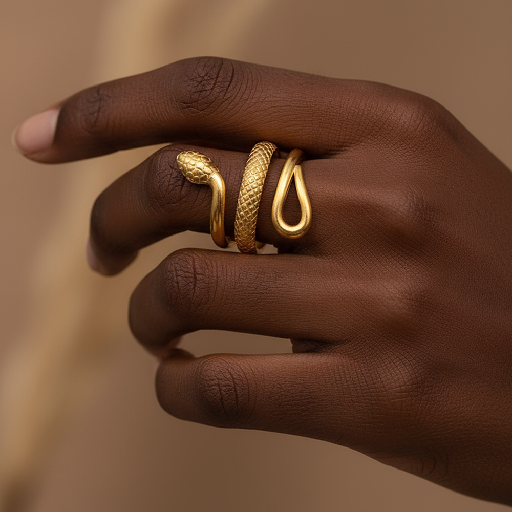 Cross-Border European and American Personalized Snake-Shaped Stainless Steel Ring for Women, Non-Fading 18K Gold-Plated Open Ring Ins Hip-Hop Jewelry