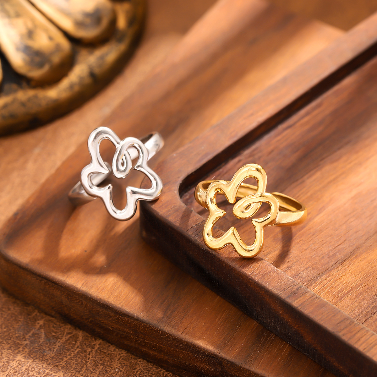 Cross-Border Hot-Selling Titanium Steel Flower Geometric Ring for Women, Niche Design, Light Luxury, Exquisite, Fashionable and Personalized Ring Trend