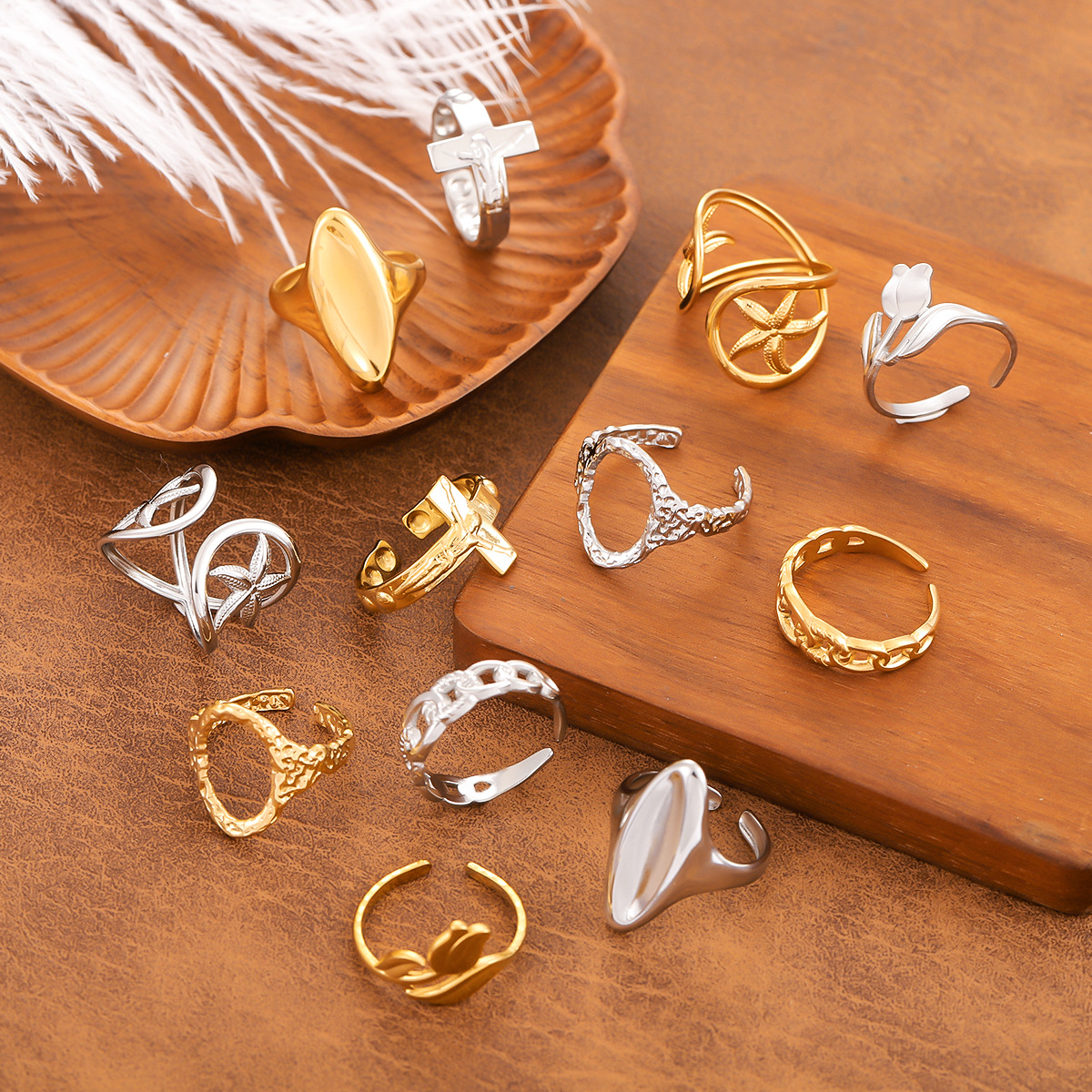 European and American Fashion Popular Stainless Steel Flower Ring Stylish Hip-Hop 18K Gold-Plated Rose Open Ring Trendy Women