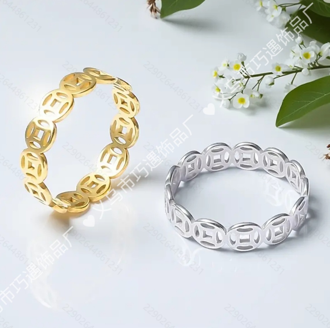 Factory Direct Sale 18K Gold Titanium Steel Copper Coin Ring Non-Fading Retro Money Multi-Ring Women's High-End Tail Ring