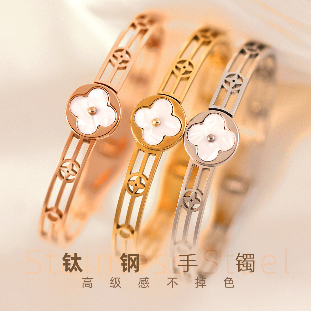 Women's Cross-Border Women's Wholesale Electroplated Gold Women's High-End Non-Fading Jewelry Four-Leaf Clover Titanium Steel Bracelet