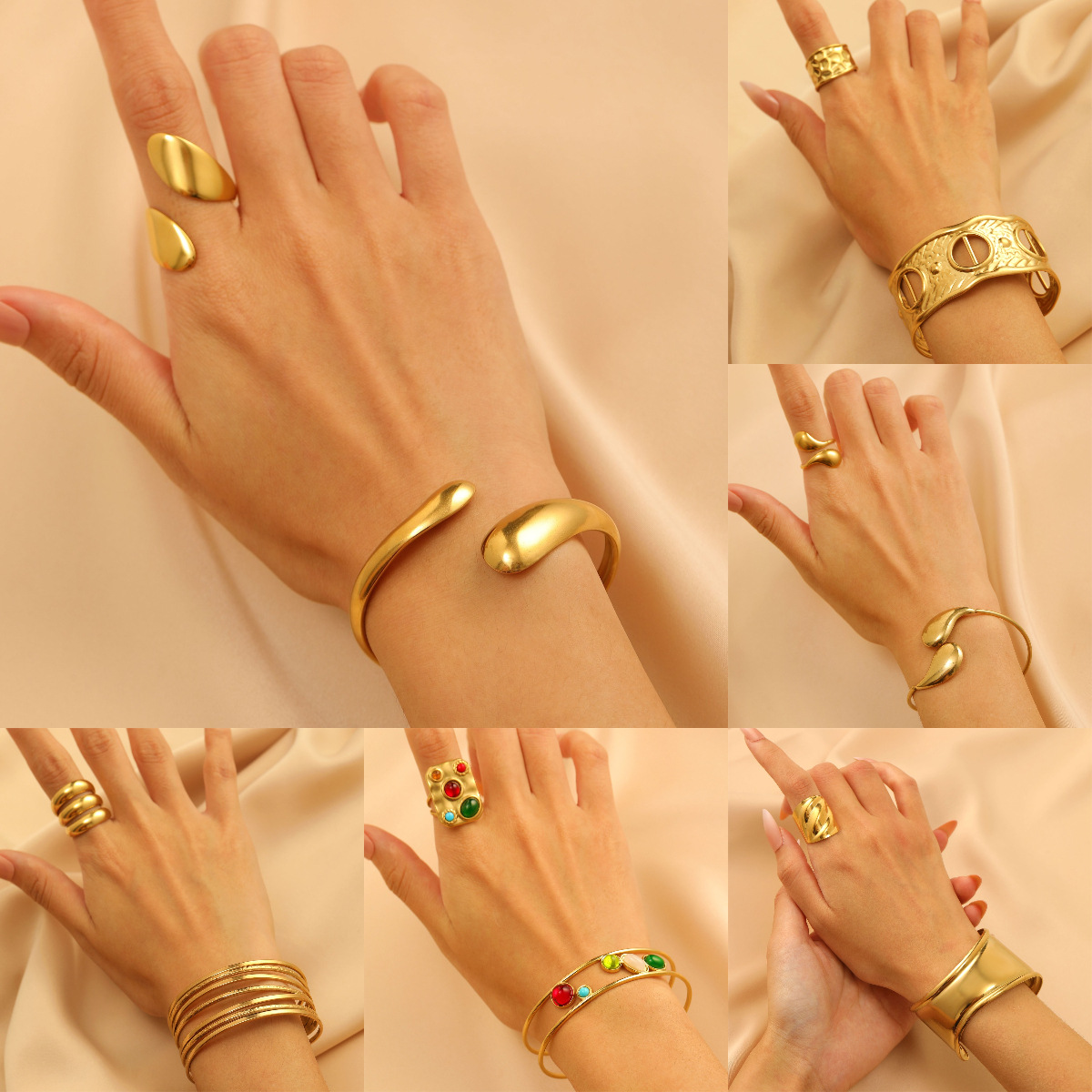 Jieding European and American Stainless Steel Water Drop Bracelet Advanced Sense Opening Bracelet 18k Gold-plated Titanium Steel Bracelet Cross-border Jewelry
