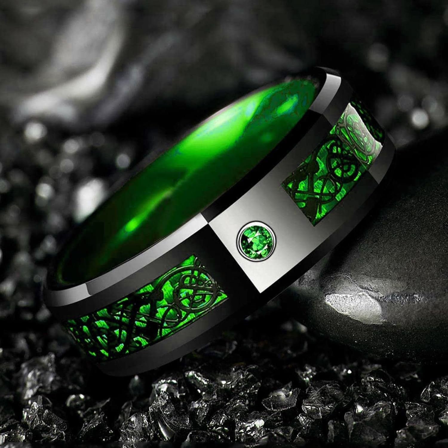 Cross-border hot green black double color explosion dragon pattern stainless steel high sense ring domineering Europe and the United States simple ring wholesale