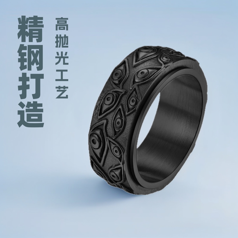European and American Cross-Border Titanium Steel Devil's Eye Ring, Rotatable Eye Ring for Couples, Trendy Hip-Hop Jewelry Wholesale