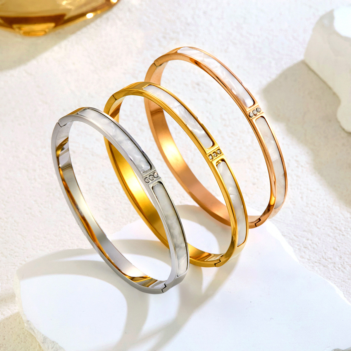 Cross-Border White Shell Bracelet for Women 18K Gold-Plated High-End Titanium Steel Bracelet Simple Niche Ins Style Diamond-Encrusted Women's Bracelet