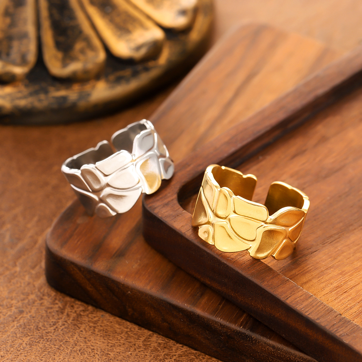European and American Fashion Accessible Luxury Versatile Stainless Steel Ring Cut Out Open Ring 18K Gold-Plated Non-Fading Ring for Men and Women