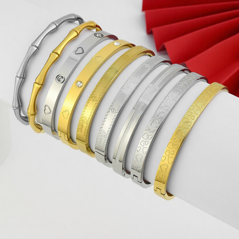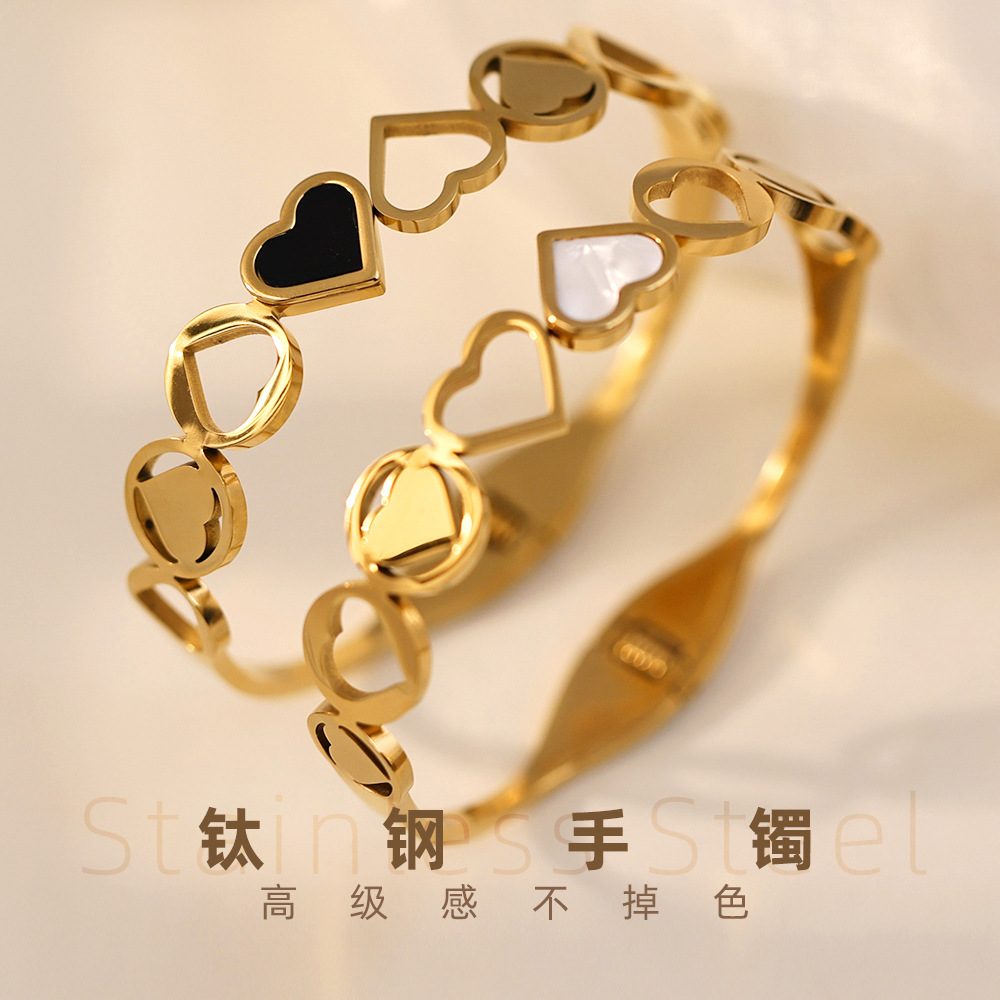 European and American Cross-Border Wholesale Women's Wholesale High-End Non-Fading Jewelry Women's Electroplated Gold Heart-Shaped Titanium Steel Bracelet