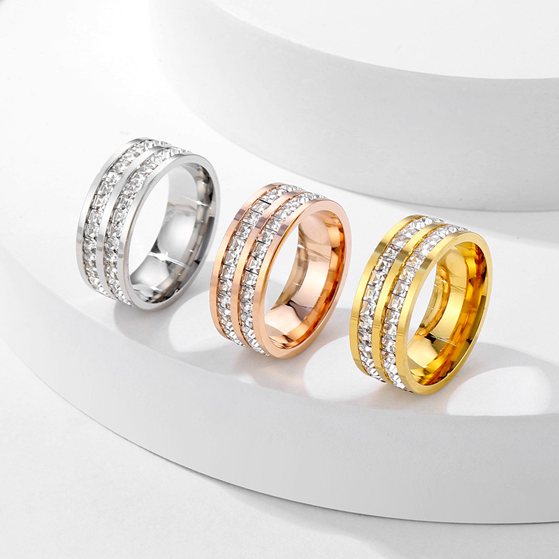 Stainless Steel Single and Double Row Small Square Diamond Full Diamond Ring Japanese and Korean Stars Rose Gold Girl's Tail Ring Live