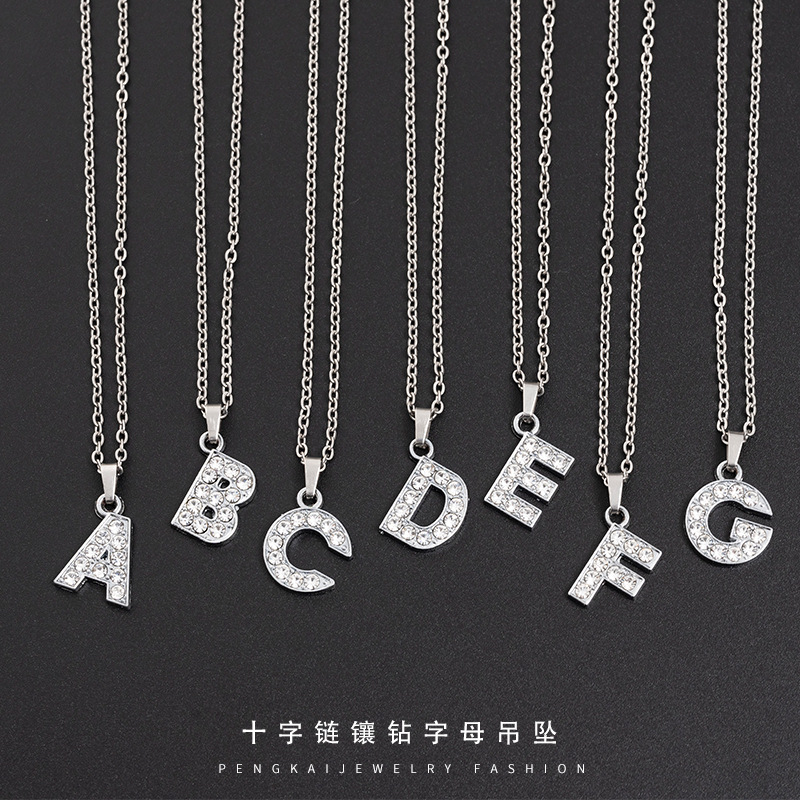 English Letter Necklace European and American Jewelry Necklace Diamond Women's Pendant Stainless Steel Letter Necklace Jewelry Necklace Necklace