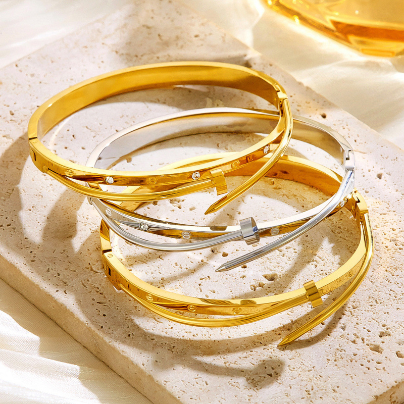 Cross-Border High-End Titanium Steel Nail Bracelet with Diamonds for Women Niche Simple Fashion Stainless Steel Bracelet Ready for Sale