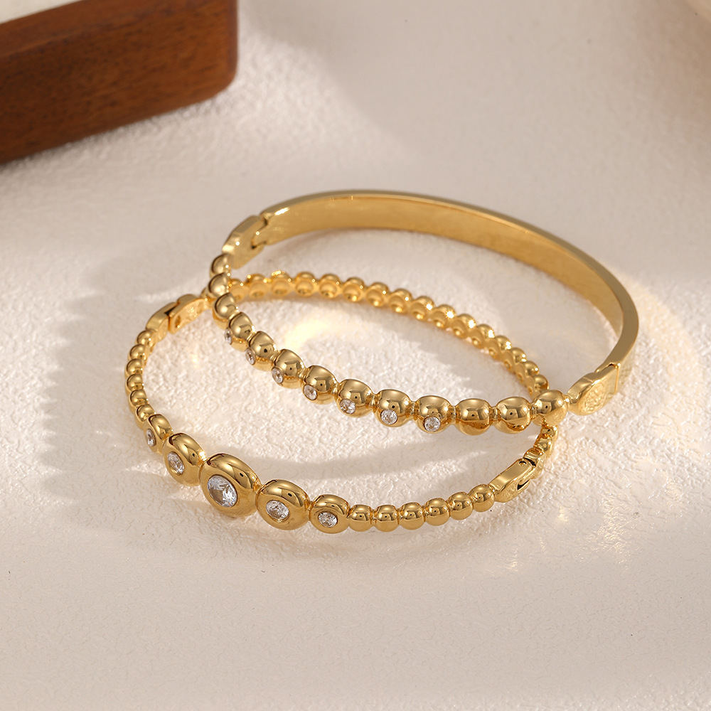 Cross-Border European and American Round Bead Stainless Steel Bracelet Bracelet for Women, Fashionable and Personalized Diamond-Encrusted Zircon 18K Gold-Plated Titanium Steel Bracelet