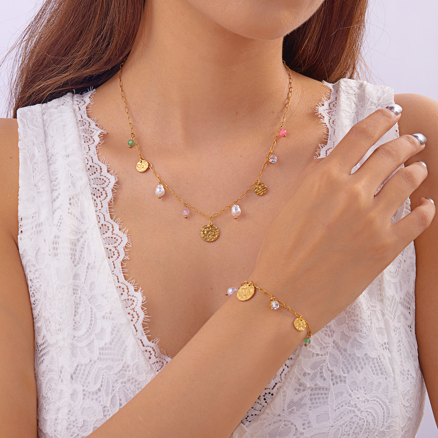 European and American Cross-border New Stainless Steel Round Pearl Bracelet Necklace suit Women's All-match Fashionable Simple Fadeless Jewelry
