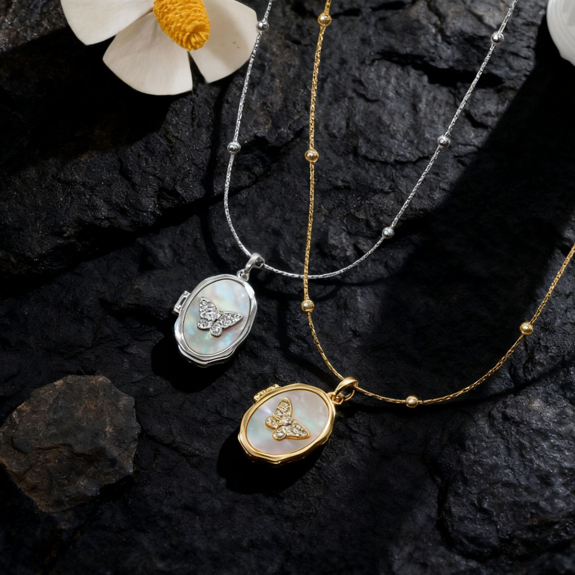 Best-Selling Portable Shell Photo Album Necklace in Europe and America, Photo Box That Can Be Opened and Closed, Butterfly Pendant, Non-Fading Photo Box Necklace