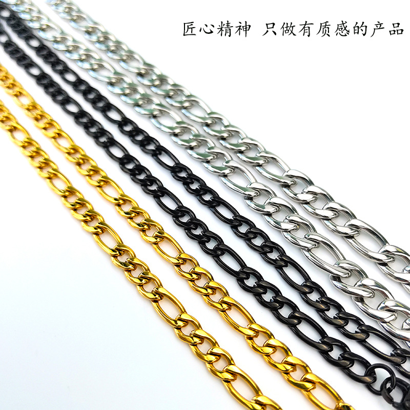 European and American High-End Hip-Hop Titanium Steel Figaro Necklace Vacuum Electroplating Real Gold 3:1Nk Clavicle Chain Jewelry for Women