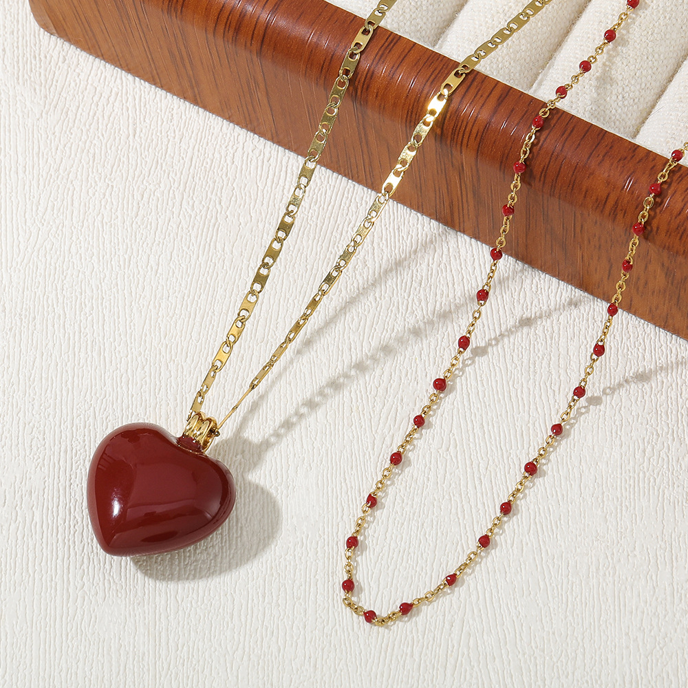 Retro Red Heart Long Necklace, High-Grade Titanium Steel Clavicle Chain, Stacked Accessible Luxury, Simple Red Heart Pendant That Does Not Fade