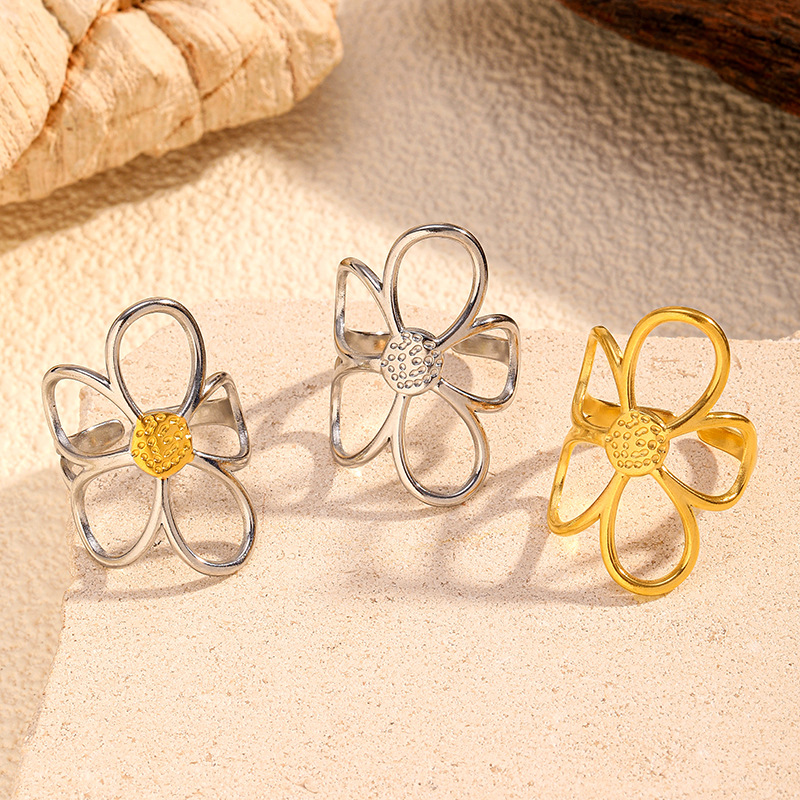 Chenhe Titanium Steel Jewelry Women's High-End Niche Design Fashion Hand Jewelry Stainless Steel Flower Non-Fading Open Ring