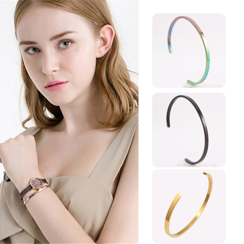 Cross-Border Hot-Selling Stainless Steel Corrosion Oil Dripping Bracelet Sun Moon Star Jewelry Stainless Steel C-Shaped Open Bracelet Jewelry Batch