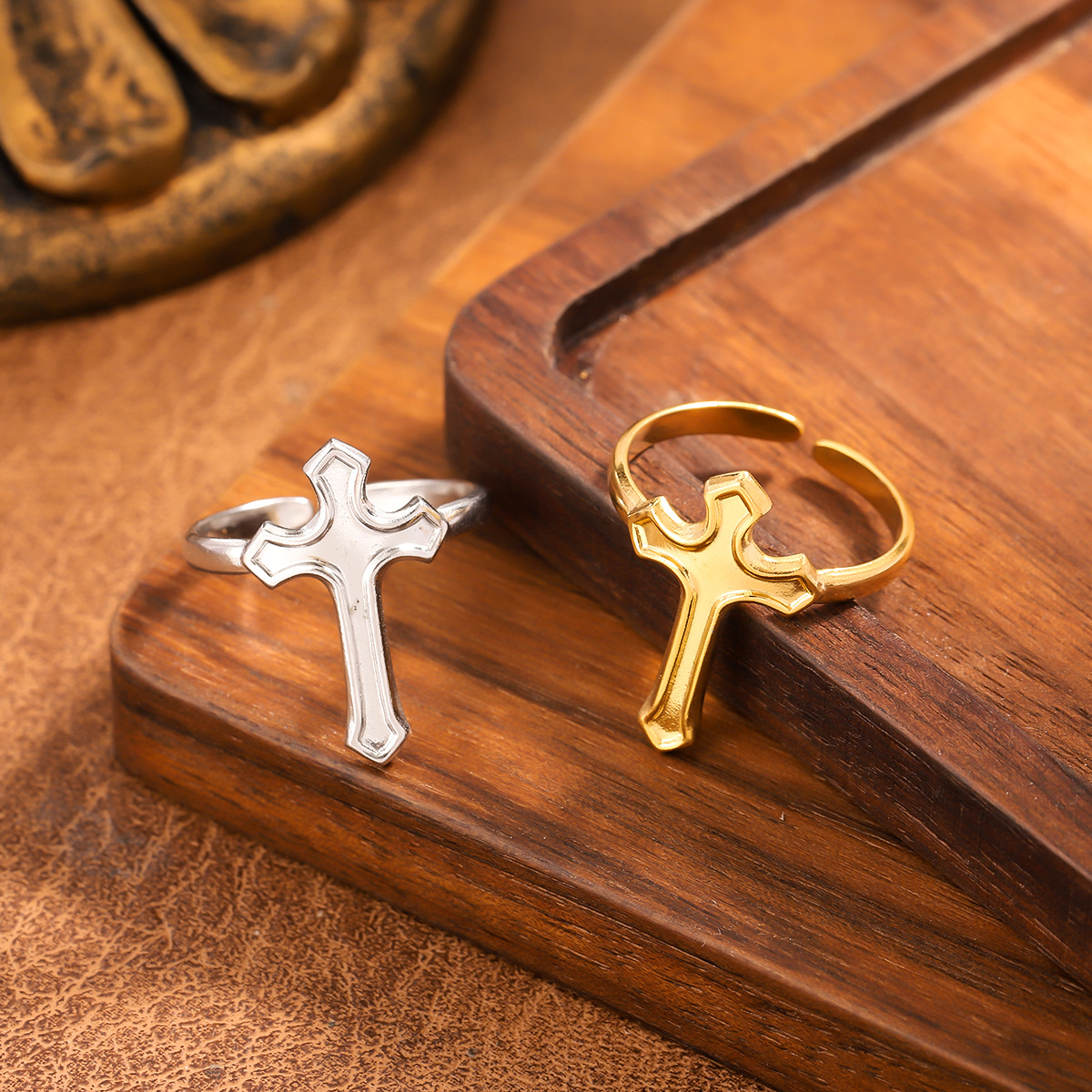 French Stainless Steel Ring, Light Luxury and High-End Cross Ring, Niche Cross-Border Retro Style Design Ring