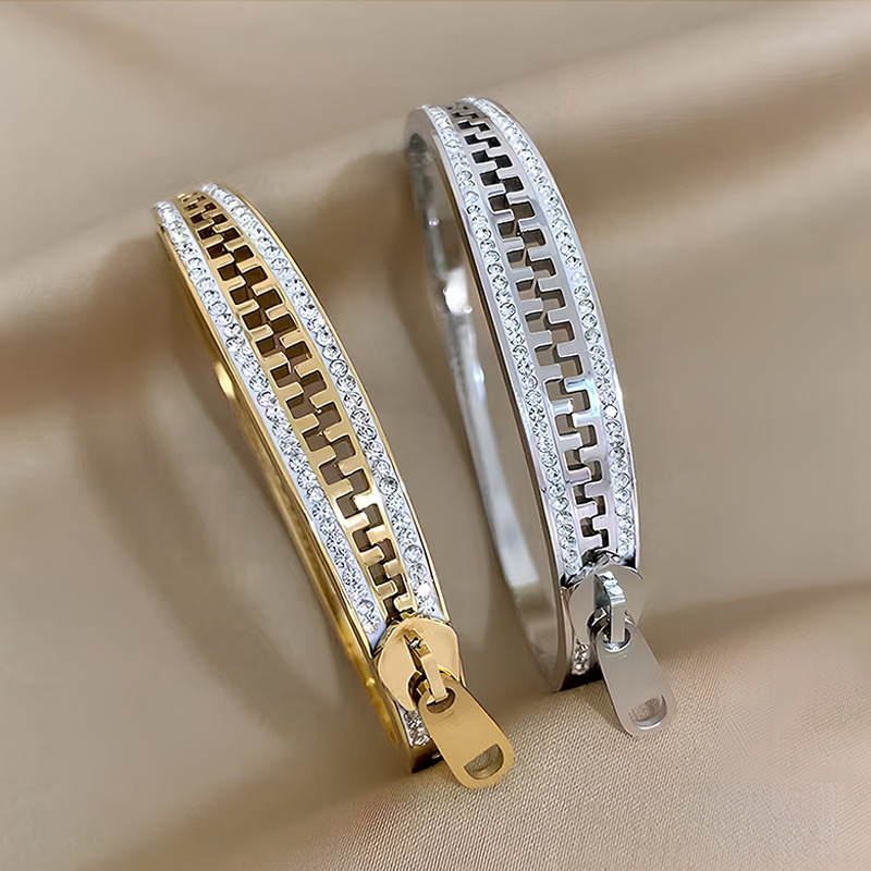 Personalized Niche Design Titanium Steel Bracelet with Diamond Zipper Bracelet for Girls, Light Luxury and High-End Stainless Steel Exquisite Bracelet