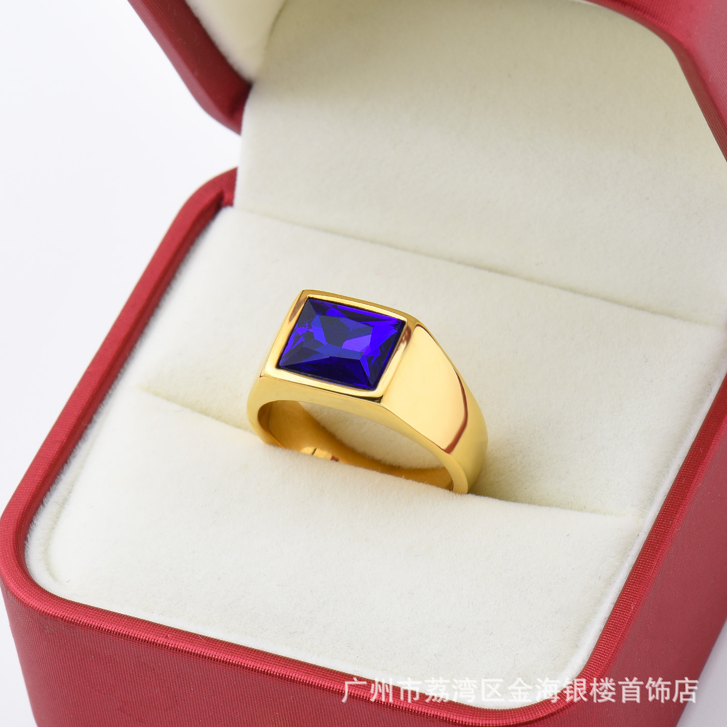 R363 Cross-border European and American Explosions Internet Celebrity Ins Simple Jewel Color Titanium Steel Stainless Steel Square Ring for Men and Women