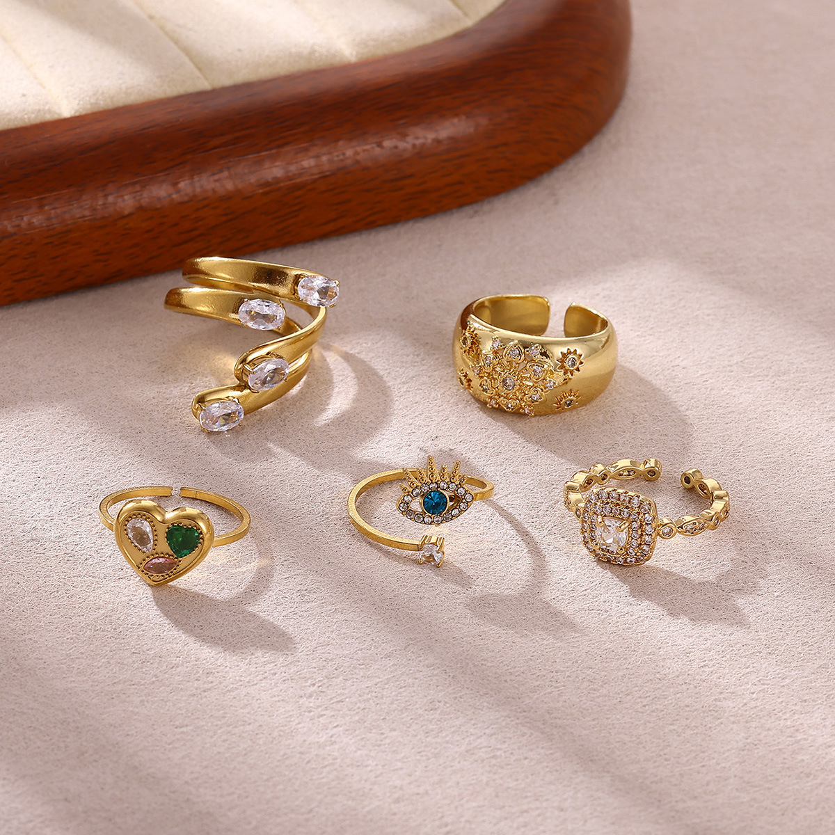 Stainless Steel 18K Gold Zircon Open Ring, Vintage Style, Light Luxury, Diamond-Encrusted Heart Ins Style Ring, High-End Jewelry