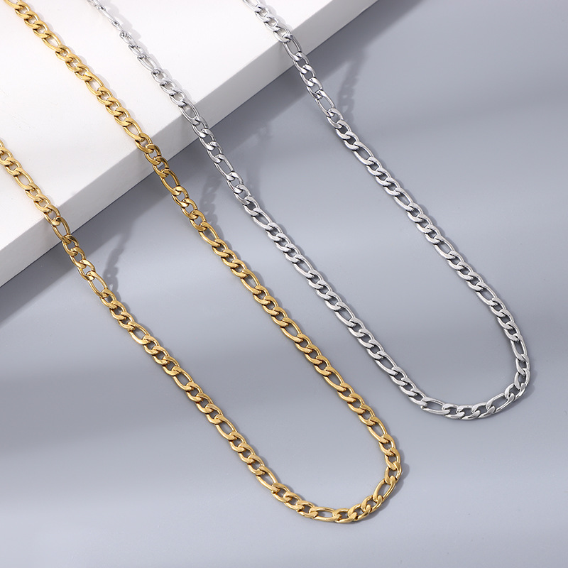 Cross-Border Hot Selling Stainless Steel 1.0Nk3:1 Cuban Chain Titanium Steel Vacuum Electroplated Gold Necklace Necklace