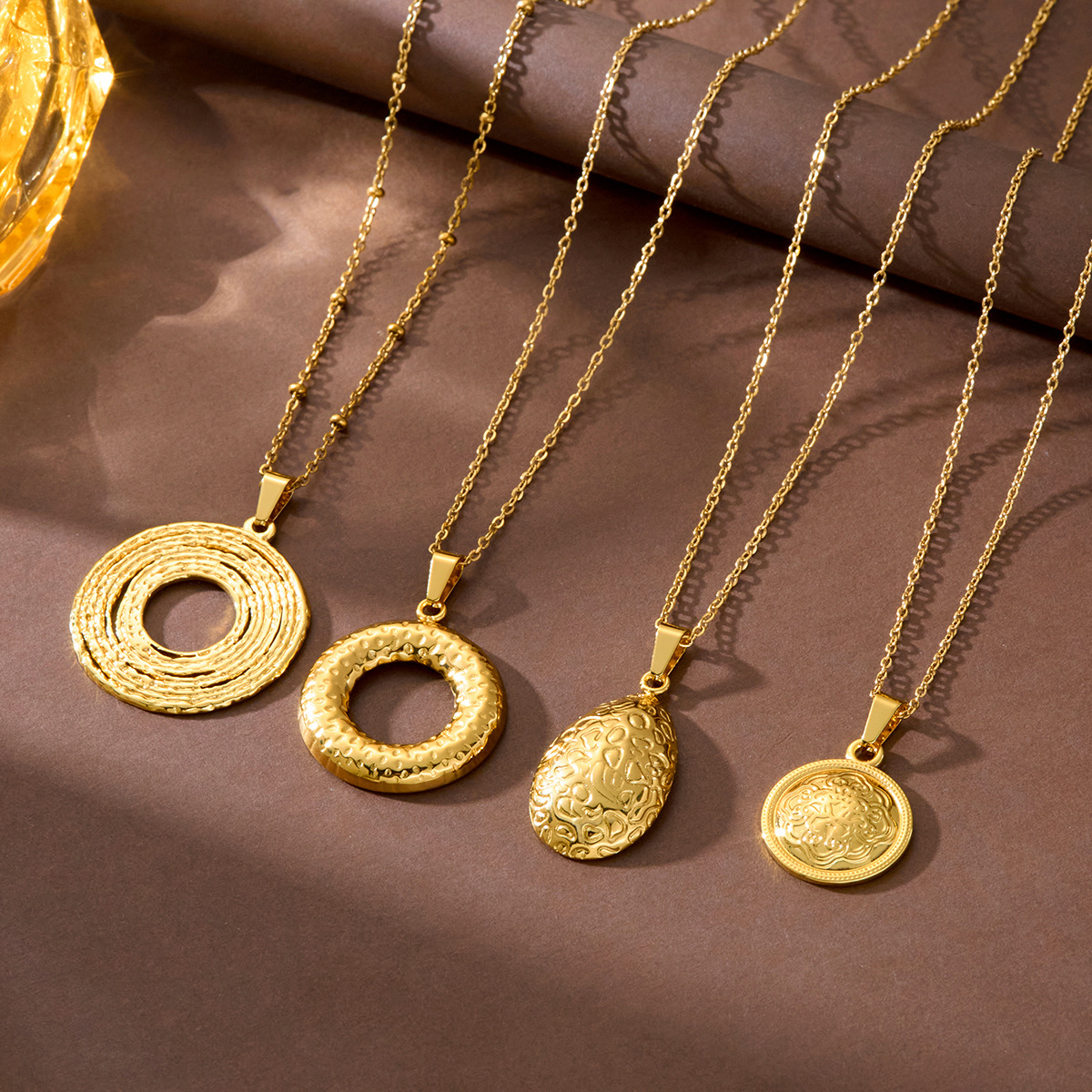 European and American Fashion Round Gold Coin Personalized Avatar Round Medal Necklace Titanium Steel 18K Gold Women's Clavicle Chain Coin Pendant