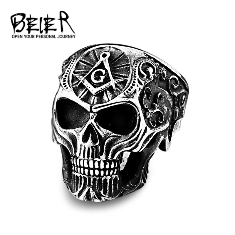 beier punk Masonic stainless steel skull ring European and American retro domineering men's titanium ring