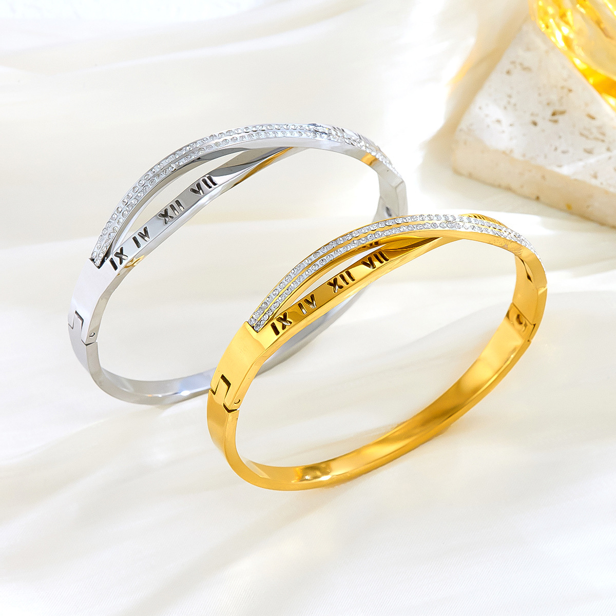 European and American Roman Cross White Diamond Bracelet for Women, Fashionable Internet Celebrity Same Style Diamond-Encrusted 18K Gold Bracelet, Cross-Border Hot-Selling Hand Jewelry
