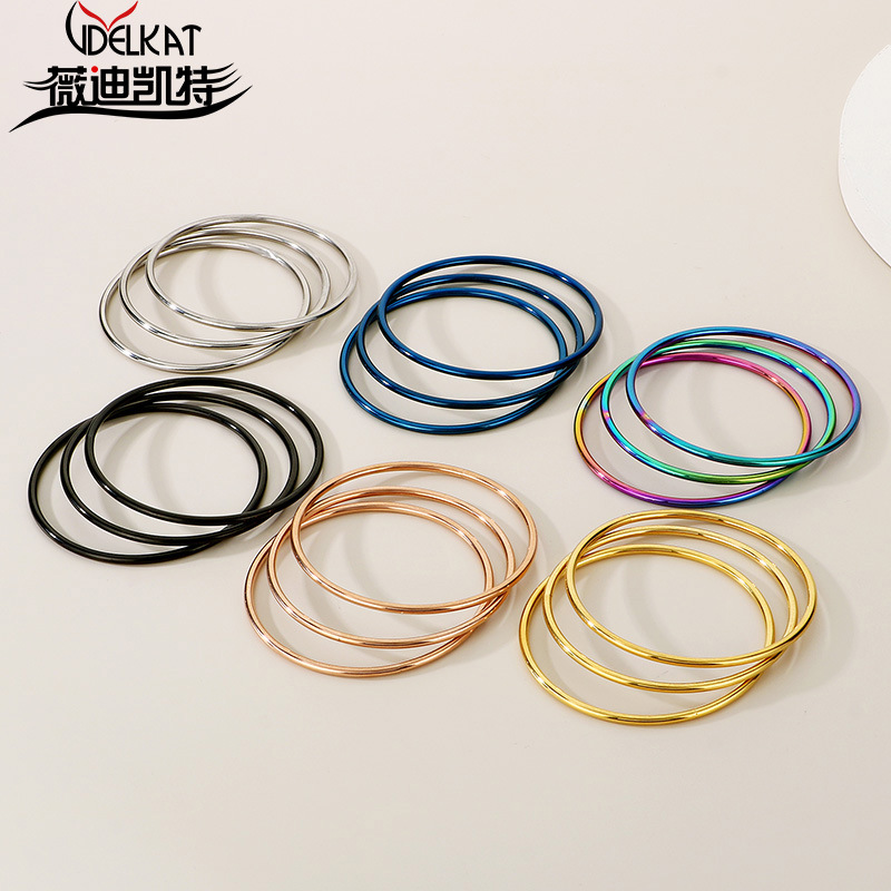 Cross-border jewelry supply wholesale 18K vacuum gold-plated multi-layer multicolor 68*3mm round plain ring titanium steel bracelet