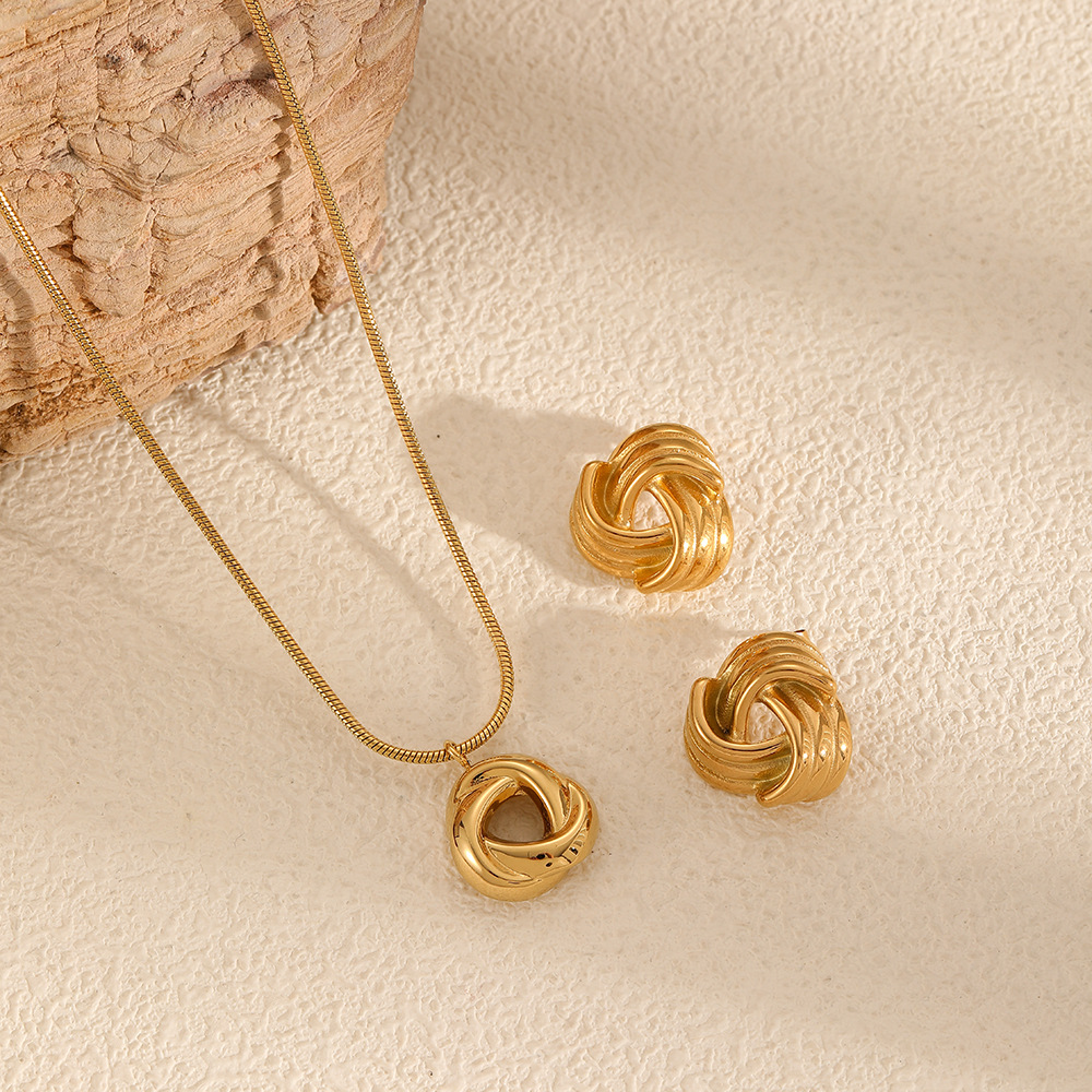 Niche Design Swirl Stainless Steel Necklace Earrings Women's Jewelry Set Fashionable Versatile High-End Long Sweater Chain