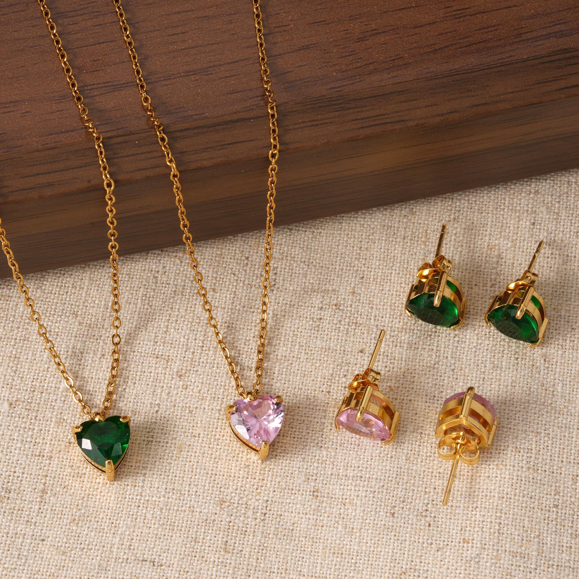 Amazon Pendant Cross-Border Trade Heart Necklace Earrings Bracelet Titanium Steel Stainless Steel Two-Piece Jewelry Wholesale