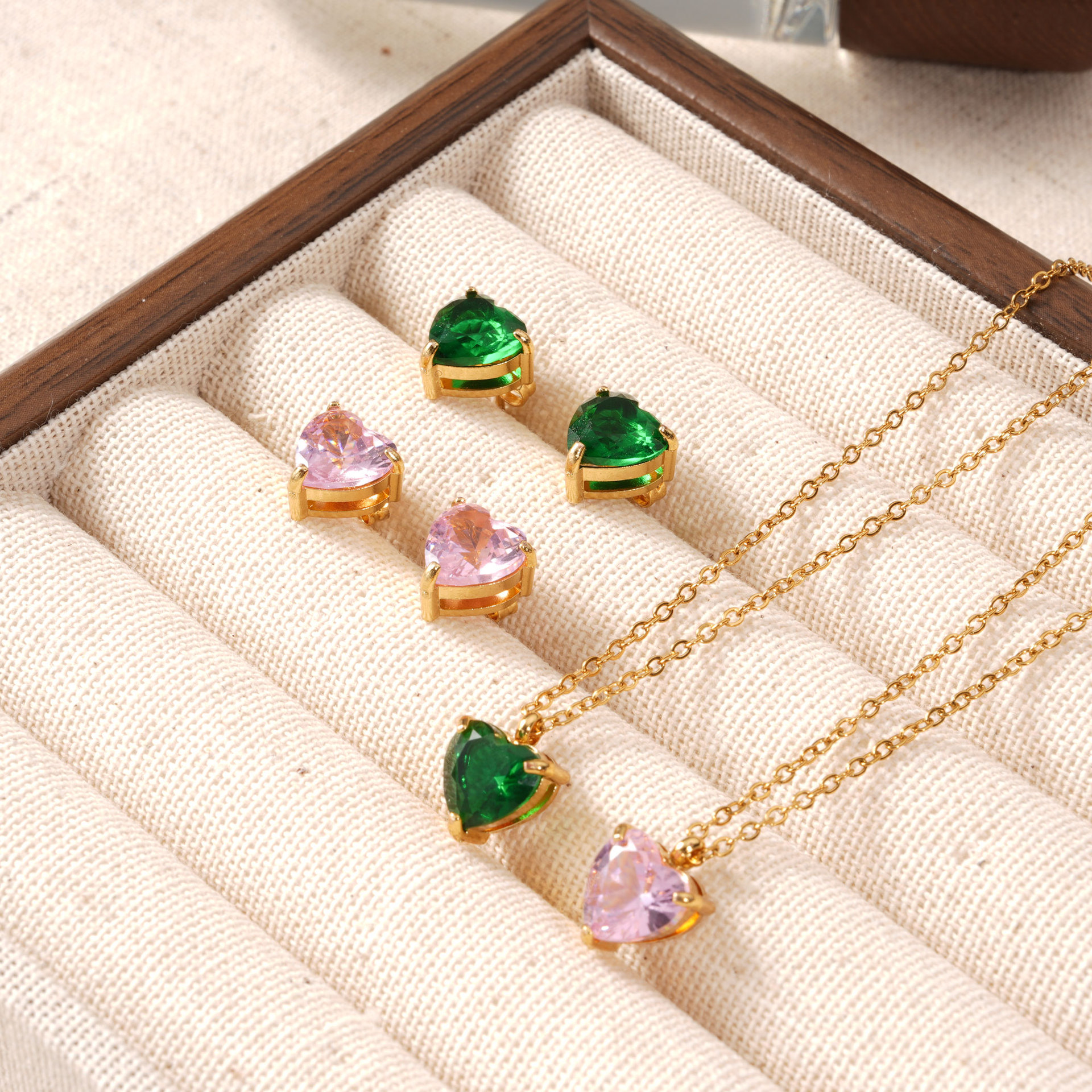 304 Stainless Steel Colorful Zircon Jewelry Fashion Set Heart-Shaped Non-Fading Accessible Luxury Versatile Women's Bracelet Necklace