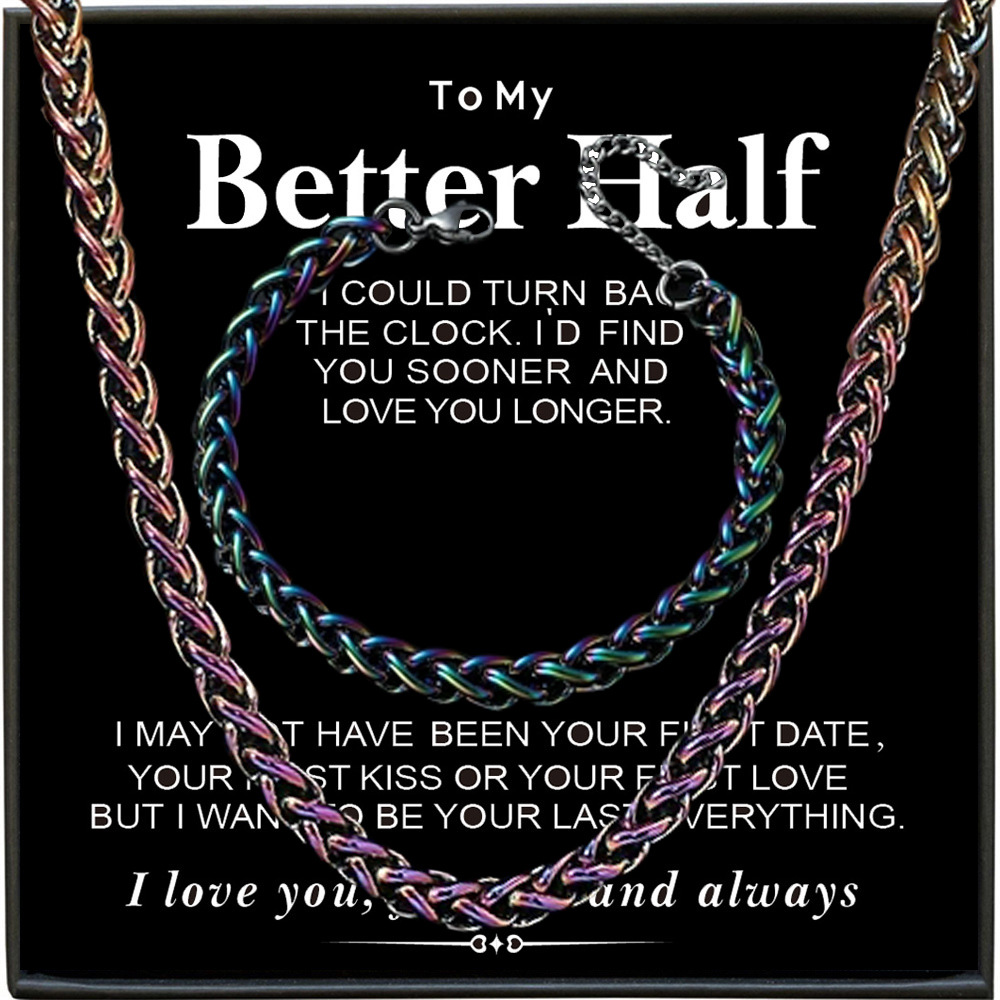 European and American hip hop men's trendy colorful keel necklace or bracelet fashion gift box suit cross-border jewelry wholesale