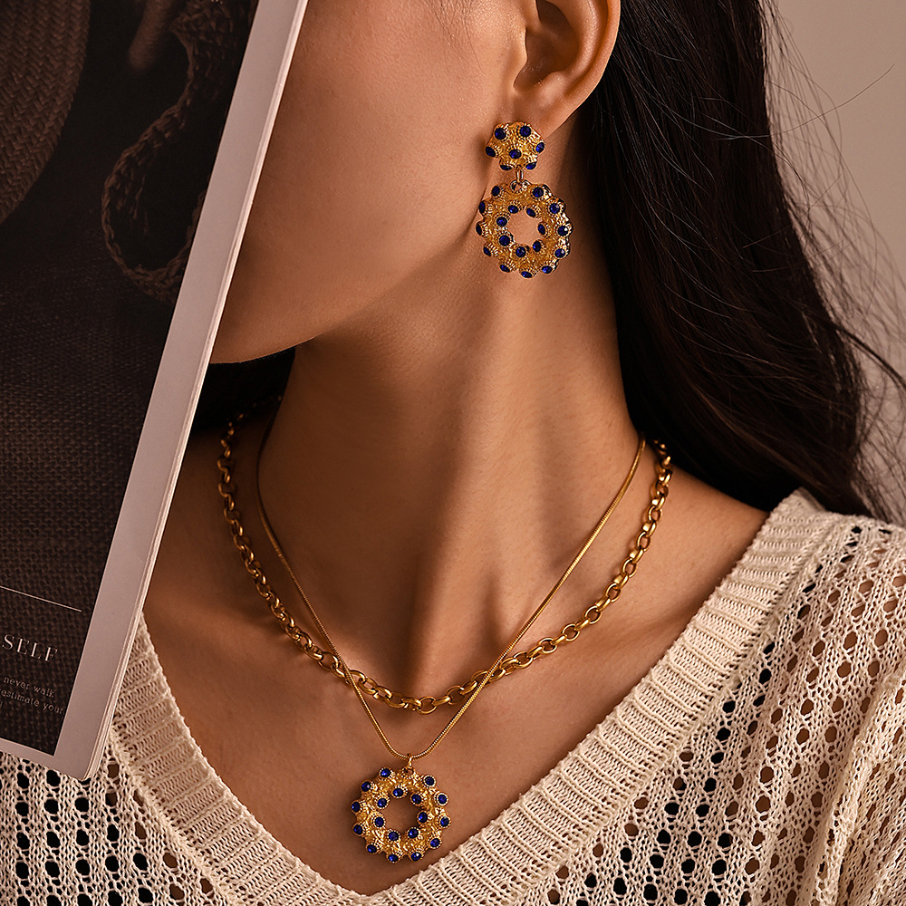 Xinyixin ancient vintage donut rhinestone earrings earrings double necklace stainless steel jewelry suit