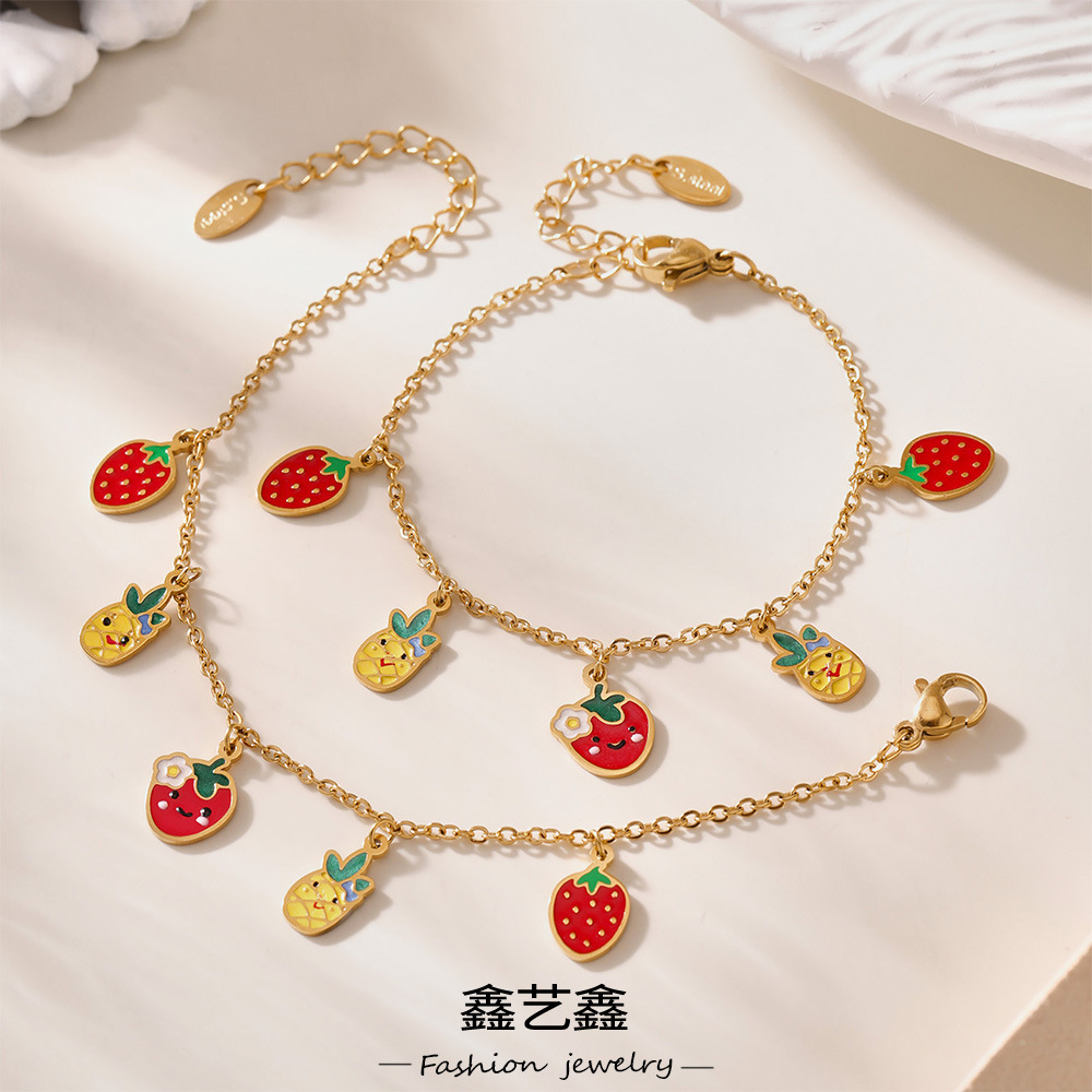 Xinyixinxin Stainless Steel Fruit Shape Oil Dripping Kidsren's Jewelry Set 18K Real Gold Plated Non-Fading Necklace Bracelet