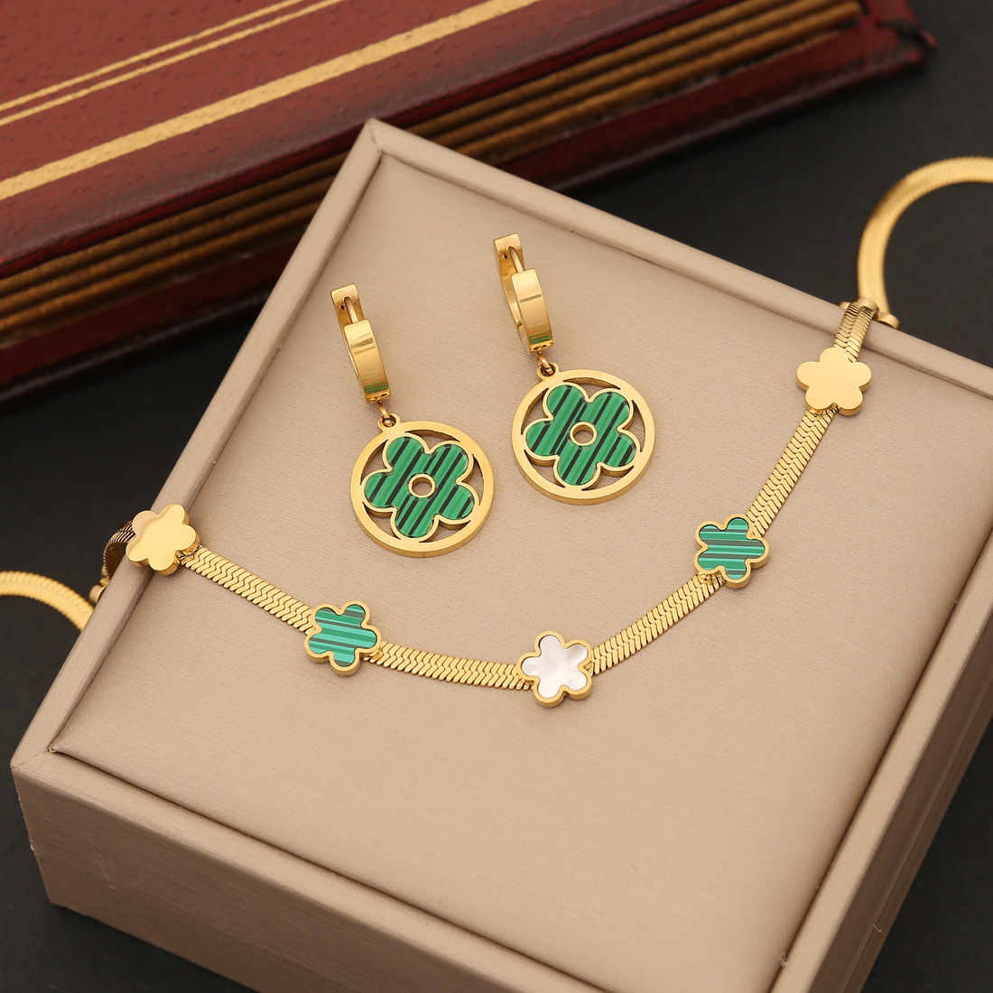 Cross-border new jewelry green flower necklace fashion stainless steel jewelry suit elegant clavicle chain N1165