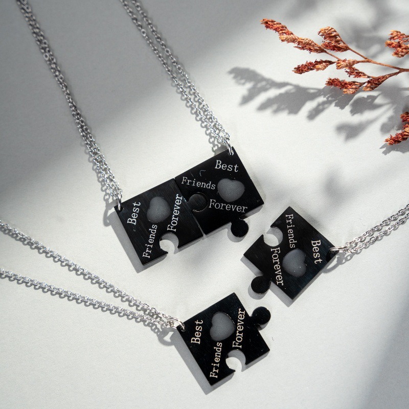 Amazon's Best-Selling Stainless Steel Bff Friendship Puzzle Pendant Necklace Set, 4 Pieces, with Luminous Function