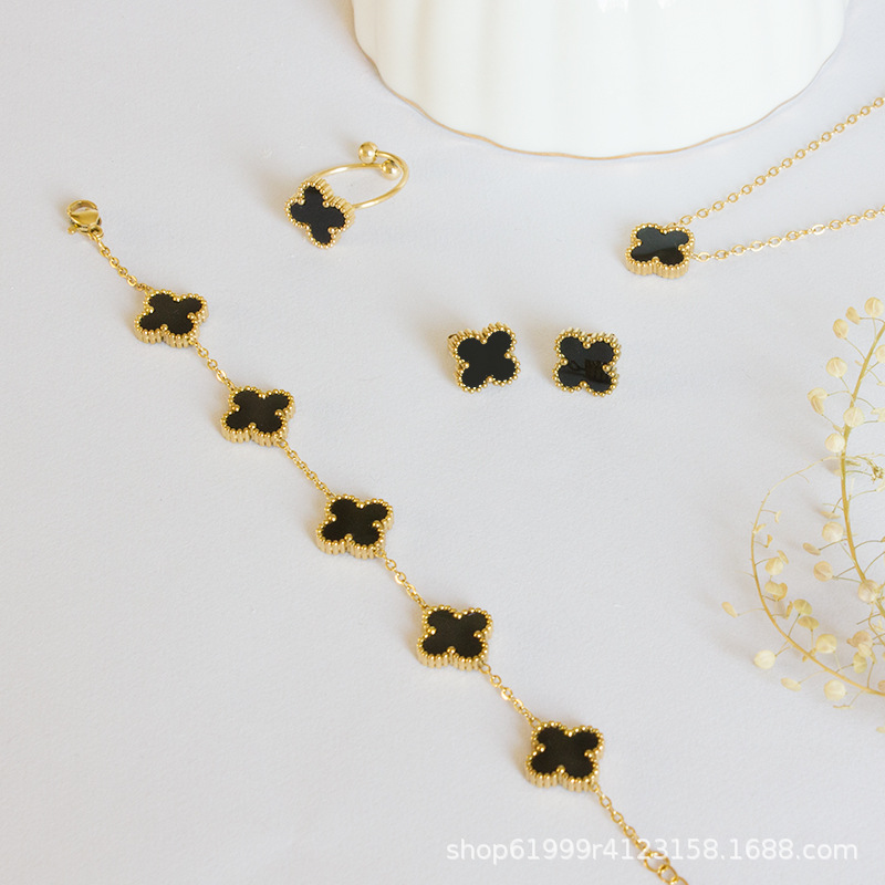 Cross-Border New Five-Leaf Flower Plum Blossom Bracelet Necklace Set Five-Leaf Clover Titanium Steel Earrings Forest Series Jewelry Set