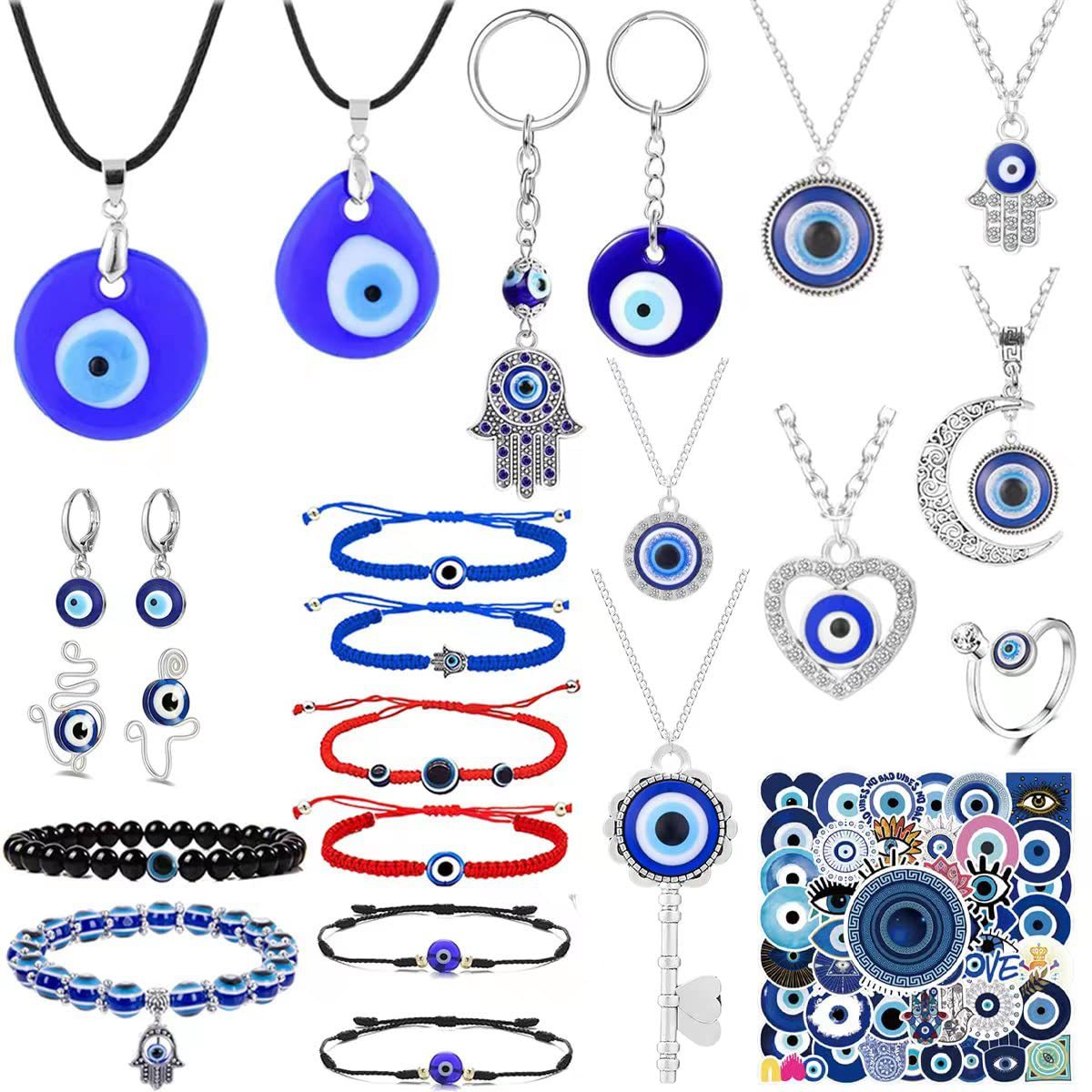 Amazon Hot Devil's Eye Glaze Pendant Alloy Eye Necklace Set Earrings Keychain Woven Bracelet