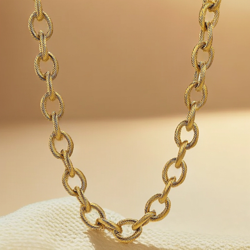 Fashion Commuting Compressed Pattern suit Color-free Titanium Steel Clavicle Chain 18K Gold Electroplated Stainless Steel Necklace Women's Jewelry