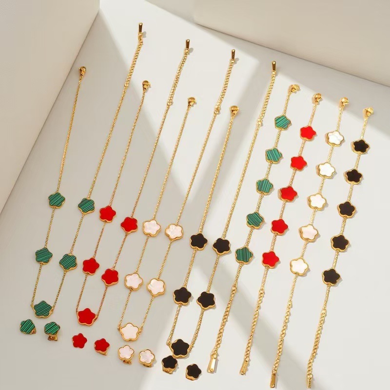 Explosive Four-leaf Clover Necklace Bracelet Earrings Three-piece Set All-match Lucky Four-leaf Clover Five-flower Bracelet Clavicle Chain Earrings
