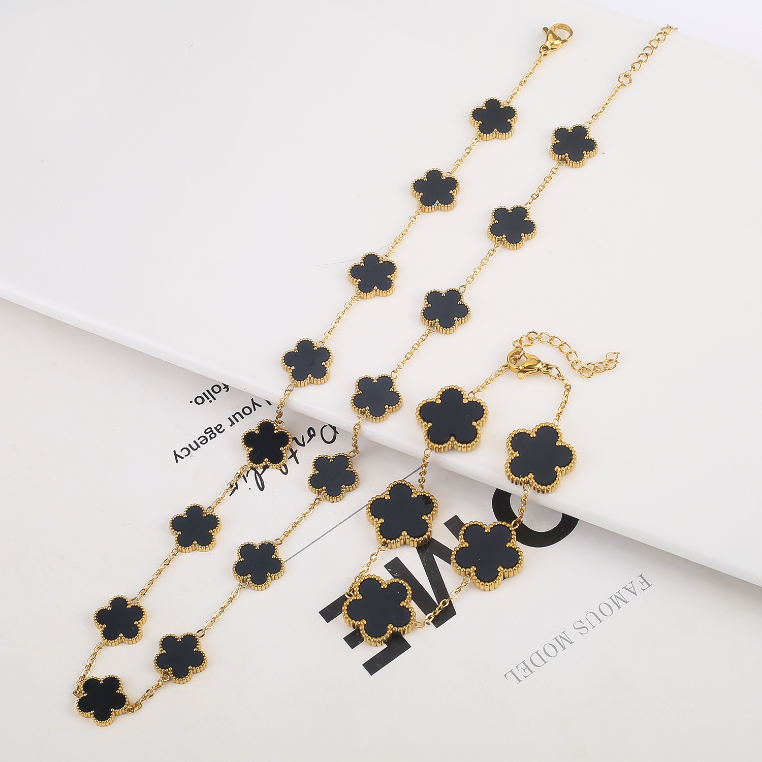 European and American Explosions Lucky Grass Double-sided Five-flower Bracelet Five-flower Fritillaria Titanium Steel Jewelry suit Necklace Bracelet Earrings