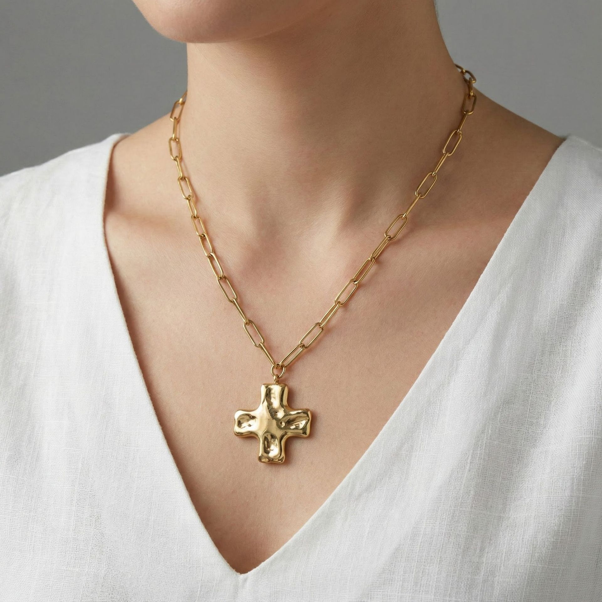 European and American Stainless Steel Hammered Cross Pendant Necklace Ring Set Niche Light Luxury Design Titanium Steel Jewelry Cross-Border