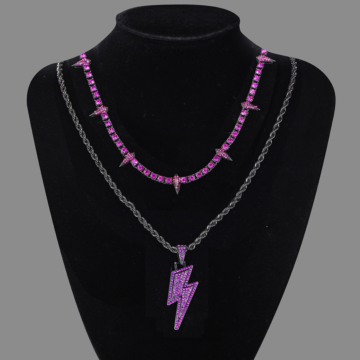 European and American Hip-Hop Black Panther Necklace Dark Style High-End Rhinestone Alloy Diamond Lightning Pendant Full of Diamonds Cool Set