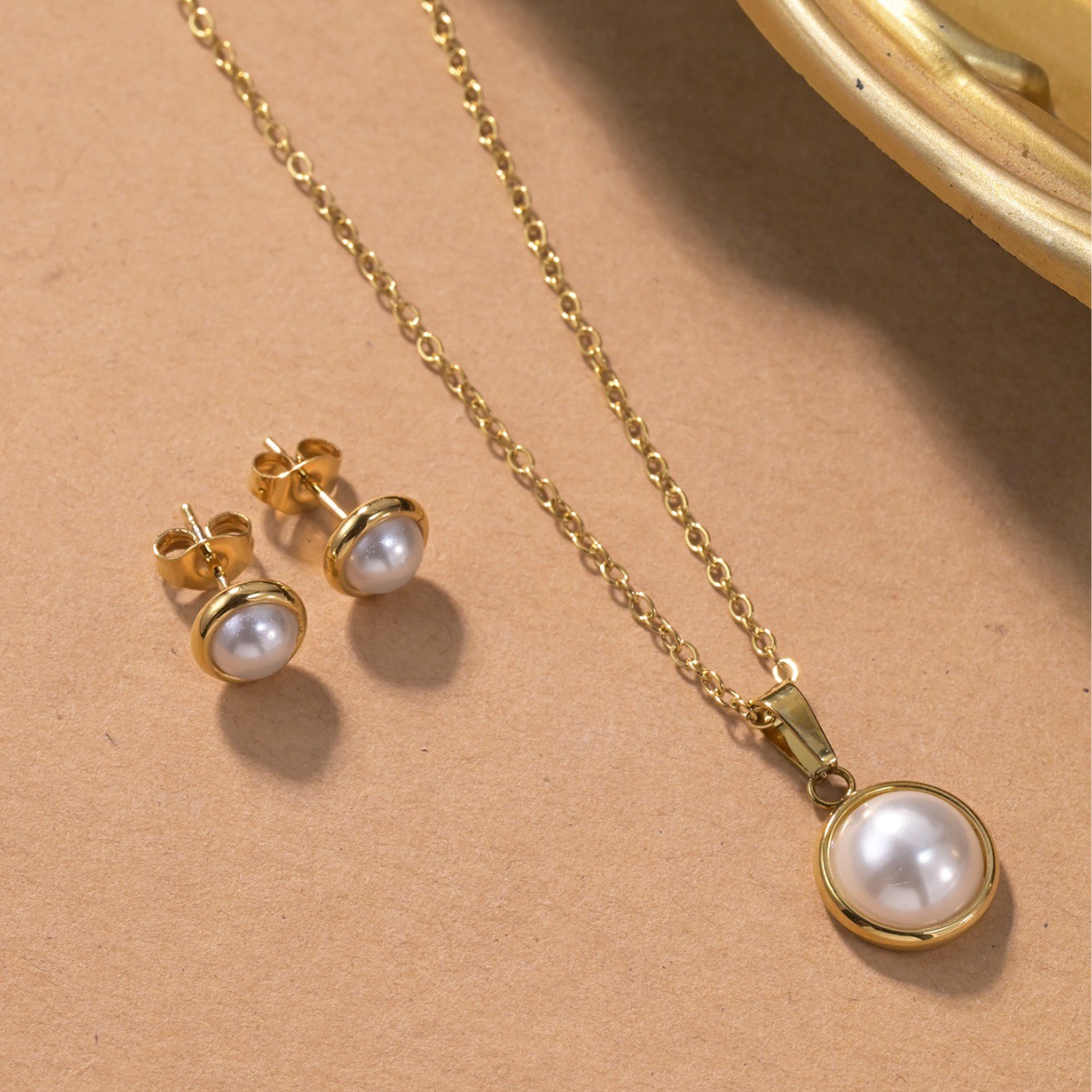 Cross-Border Fashion Pearl Necklace and Earring Set Versatile Women's Light Luxury French Simple Fashion Non-Fading Clavicle Chain