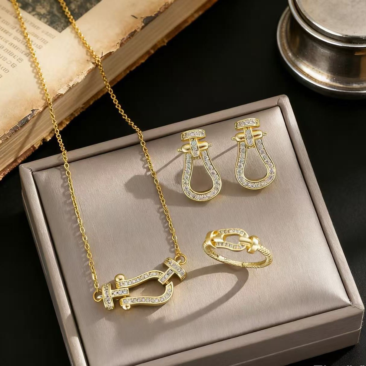 European and American Cross-Border Jewelry Set Horseshoe Buckle Necklace for Women Versatile Micro-Inlaid Niche Light Luxury Heavy Craftsmanship Clavicle Chain Earrings for Women
